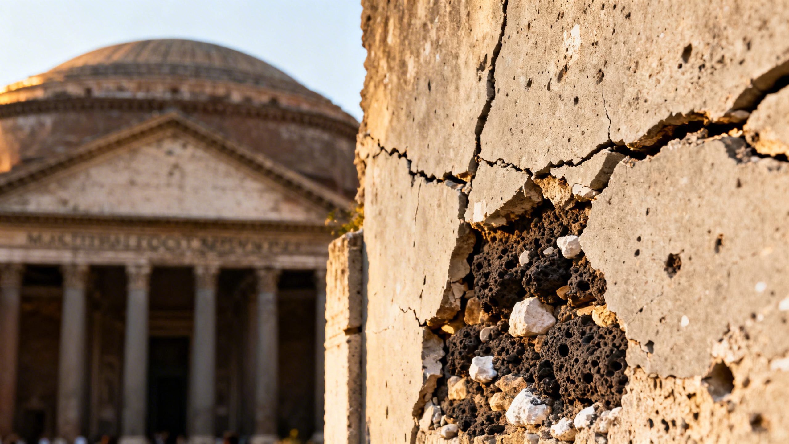 L'altro ingrediente chiave era la pozzolana, una cenere vulcanica che i Romani prelevavano dalla zona di Pozzuoli, ai Campi Flegrei. Mescolata con la calce viva e l'acqua di mare, innescava una reazione che produceva cristalli di tobermorite e strätlingite, minerali che rendono il materiale sempre più resistente nel tempo.